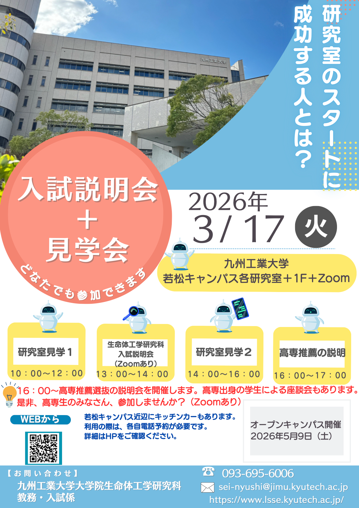 入試説明会+見学会、高専推薦説明会(3/17(火)開催決定!)