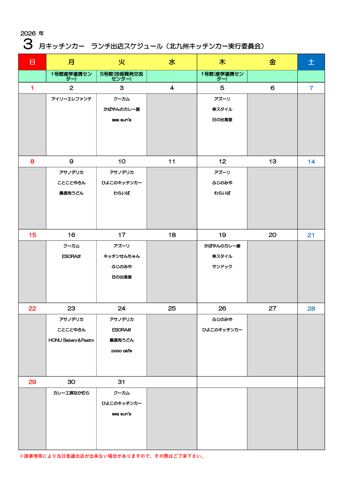▶キッチンカースケジュール